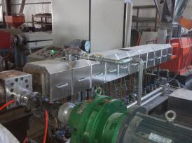 在加熱和混合的作用下,材料在擠出腔內形成高壓狀態,并通過模具的作用,將材料擠出成型,形成顆粒產品。主要組成部分包括驅動系統、傳動系統、加料系統、加熱冷卻系統、真空排氣系統、切粒系統等。
